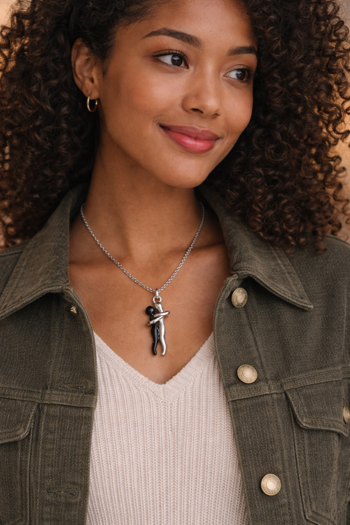 My boyfriend gave me this and I honestly got emotional. The interlocking hug is simple, but the meaning is huge. It looks high-quality, layers perfectly, and I love that it goes with everything from hoodies to dresses.