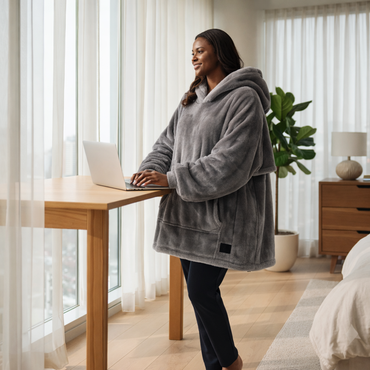 The flannel + sherpa build delivers a plush, wearable-blanket feel that stays cozy even when you’re moving around.